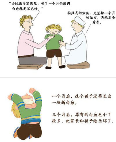 选对方法后坚持系统化的治疗,同样不可忽视。比如患者采用308准分子光疗法后,首先要根据白斑测试结果确定适宜的光照剂量,在光疗过程中,根据复色情况又要相应的调整剂量。是一个系统化渐进过程,并不是一成不变的。