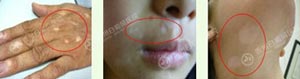 白斑颜色:患者白斑的颜色会随着病情的变化而变化,白癜风初期白斑多为浅白色,慢慢发展为云白色、纯白色、瓷白色。初期有些新发白斑的边缘有一条稍稍隆起的炎症性暗红色,可持续数周之久,对于边界模糊而又无色素增生的初期白斑,有时难以及时辨认。