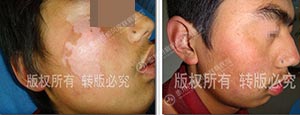 二、早期诊断:在白癜风初发期,治疗是比较容易的。初发1-2个月的白斑,往往在治疗半个月至两个月内,可以完全消失。初发的白斑,皮损内尚存有未完全破坏的黑素细胞,我们称之为“不完全性白斑”,此时及早治疗,可望于白斑皮肤基底层的黑素细胞修复、分裂增殖,分泌黑素,达到佳的治疗效果。同时,初发白斑,面积较小,周围正常皮肤的黑素细胞可向白斑区移行,亦有助于白斑迅速消失,缩短疗程。